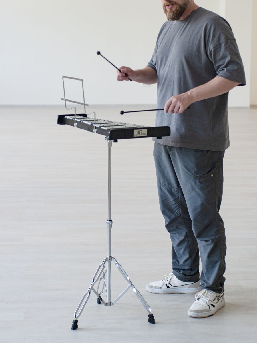 Набор: глокеншпиль, палочки, тренировочный пэд, палочки барабанные, стойка,чехол