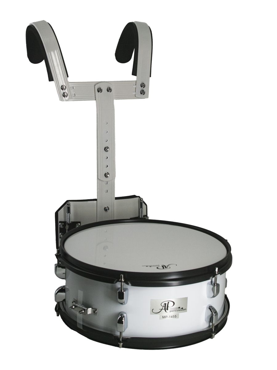 AP Percussion MP-1455 Барабан маршевый малый 14"х5,5" белый, черная фурнитура, держатель белый, палочки