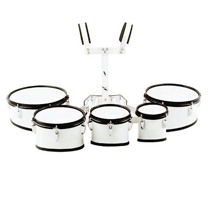 Маршевый набор том барабанов профессиональный 6" 8" 10" 12" 13" белый, черная фурнитура с держателем, палочки.