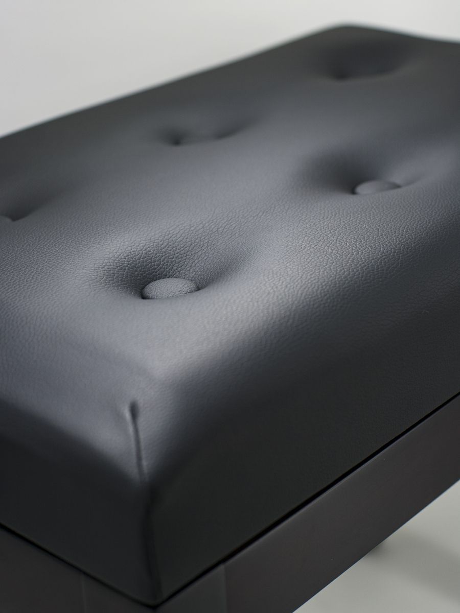 Банкетка деревянная с регулировкой высоты, цвет черный матовый, кожзам, пуговицы, в
