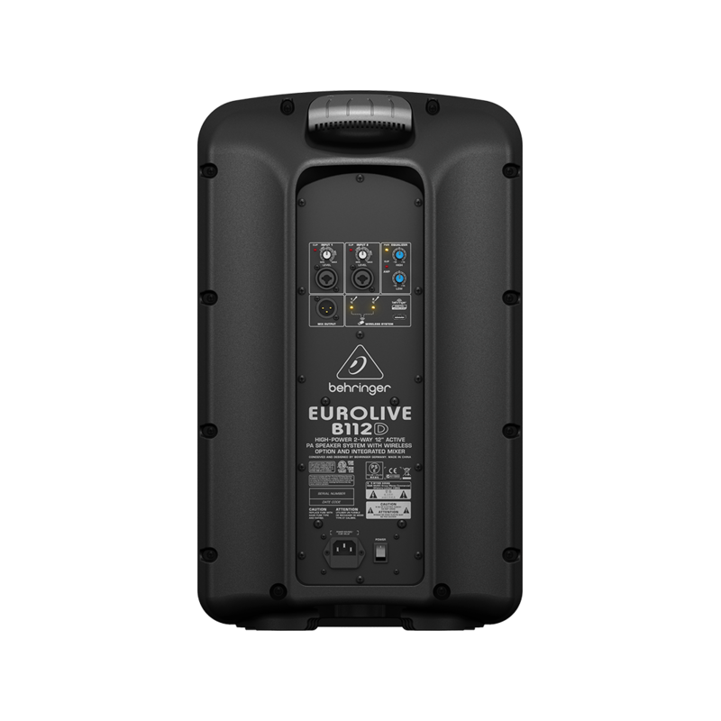 Behringer B112D Акустическая система активная, 2-х полосная, 12", 1000Вт, усилитель класса D, встроенный микшер, порт для подключения беспроводного радиомикрофона