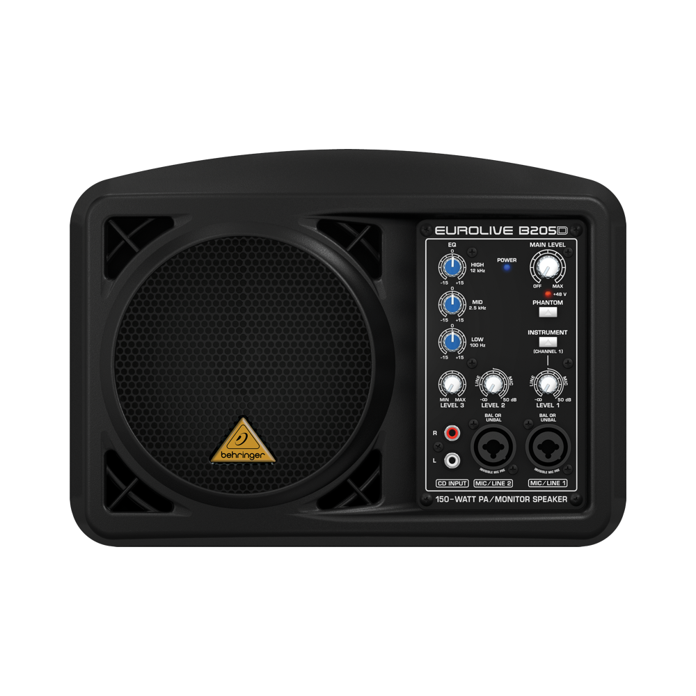 Активная акустическая система для  вокала, клавишных, мультимедиа, пресс-конференций, домашней студии звукозаписи и т.д. - Система усиления класса D - 5.25" полноспекторный, неодимовый драйвер премиум-класса - Ультранизкий уровень шума - 3-канальный микшер с 3-полосным эквалайзером - 2 "Invisible"("невидимых") микрофонных предусилителя с фантомным питанием для конденсаторных микрофонов и 1 инструментальный вход (не требуется DI) - Выделенный стерео вход для клавиатуры, MP3, CD и т.д. - Разъём XLR с переключателем mic/line для связи нескольких мониторов B205D - Встроенный лимитер для полного контроля системы и защиты динамика - Блок питания: внутренний импульсный (превосходные переходные характеристики и очень низкий расход энергии) - Супержёсткий, ударопрочный корпус со встроенной верхней ручкой - Лёгкий вес - Высококачественные компоненты и исключительно надёжная конструкция гарантируют долгий срок службы