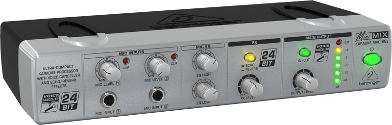 Революционный Voice Canceller эффективно удаляет вокал из любого стереоисточника, сохраняя при этом музыкальную часть практически нетронутой. Встроенный цифровой (24-бит/40 кГц) процессор с алгоритмами эха и реверберации, в свою очередь, «расширяет» голос исполнителя. 2 независимых микрофонных канала с регуляторами уровня и индикаторами пиков для точной настройки. Отдельный 2-полосный эквалайзер позволяет изменять тембровую окраску вокала, а 6-сегментный светодиодный индикатор обеспечивает точный визуальный контроль. Линейные стереофонические входы/выходы позволяют подключать проигрыватели компакт-дисков, MP3, магнитофоны и любую другую аналогичную технику. Высококачественные потенциометры и подсвечивающиеся кнопки гарантируют долгий срок службы прибора, а прославленные сверхмалошумящие операционные усилители – великолепное качество аудио. Все модели серии MINI могут устанавливаться в стек, формируя компактную систему обработки аудиосигнала.