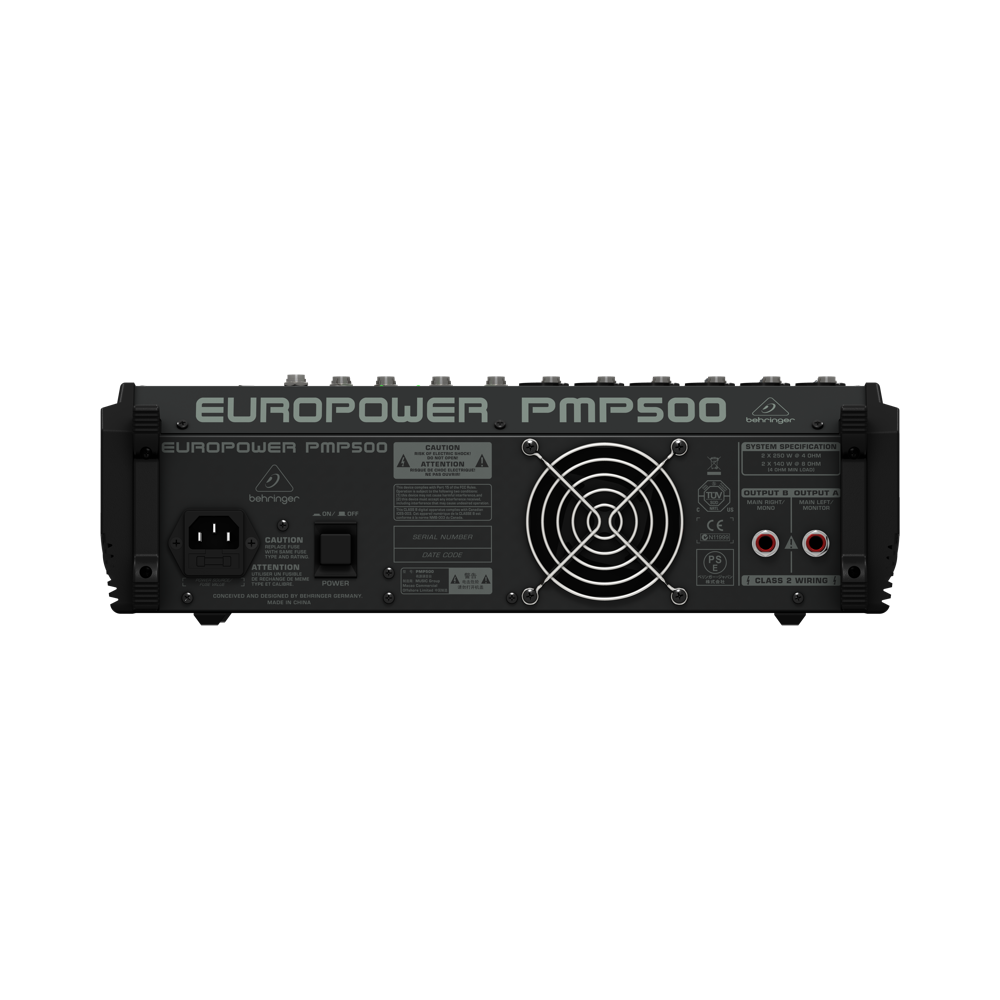 Behringer PMP500 Пульт микшерный (4 моновхода, 4 стереовхода, 6 микрофонных предусилителей) со встроенным усилителем мощности RMS 2 х 250Вт/ 4 Ом, мастер-эквалайзером, процессором эффектов Klark Teknik, порт для подключения беспроводного радиомикрофона