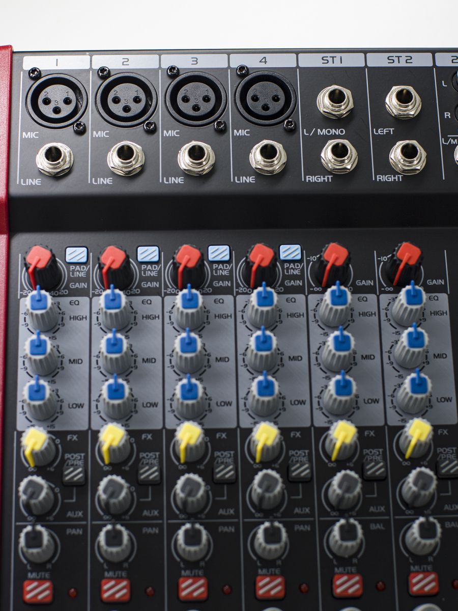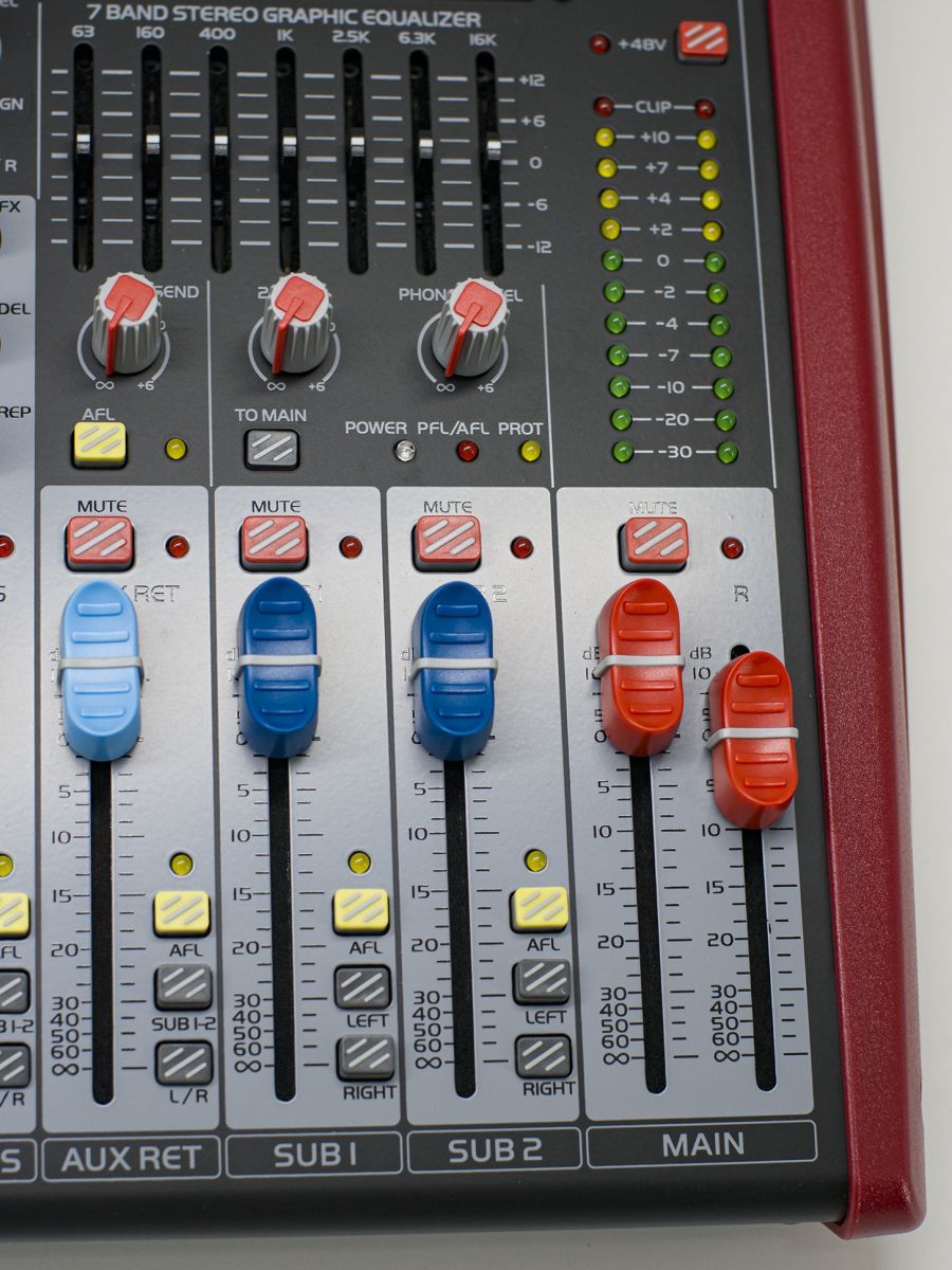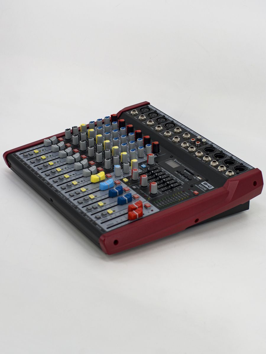 BG M206 – это аналоговая микшерная консоль. Модель спроектирована для профессионального применения. BG – это качественное и доступное по цене профессиональное звуковое и трансляционное оборудование. Продукция бренда BG станет идеальным вариантом для баров, ресторанов и конференц-залов. Строжайший контроль технологического процесса обеспечивает высококачественное звучание и безупречную надежность оборудования. Особенности модели: – 6 каналов – LR main mix – 2 AUX – 2 group стереофонических входа – 3-полосный эквалайзер – измерители Channel и Master – фейдеры с защитой от пыли – пиковый индикатор в каждом канале – балансные XLR выходы с электропитанием +26 dBu – 7-полосный графический эквалайзер – процессор эффектов – функция записи – металлические джеки, позолоченные разъемы XLR – внешний адаптер питания – фантомное питание Микшерный пульт обладает компактным дизайном и имеет две прочные боковые ручки. Панель управления может наклоняться на 10 градусов в целях обеспечения наилучшего обзора, что является большим преимуществом. BG M206 оснащен 3-полосным эквалайзером и процессором DSP-эффектов. Консоль имеет слот для карты SD и порт USB. Главной особенностью модели является наличие встроенного MP3-плеера, который может записывать аудиосигнал, исходящий с канала main, и сохранять его в текущий блок памяти в формате WAV. Микшерный пульт BG M206 станет прекрасным вариантом для аудиостудий, конференц-залов и выездных инсталляций.