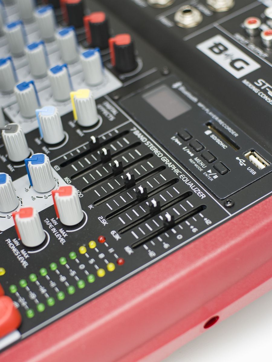 BG ST-82 – это бюджетный аналоговый микшерный пульт. Консоль обеспечивает прекрасное решение для легкости и удобства подключений. Микшер создан в соответствии со стандартами первоклассных консолей, благодаря чему вы можете с уверенностью рассчитывать на надежность в эксплуатации и прекрасные акустические характеристики. BG – это качественное и доступное по цене профессиональное звуковое и трансляционное оборудование. Продукция бренда BG станет идеальным вариантом для баров, ресторанов и конференц-залов. Строжайший контроль технологического процесса обеспечивает высококачественное звучание и безупречную надежность оборудования. Основные характеристики: – корпус на 8 каналов – LR main mix – функция записи – 2 group стереофонических входа – 3-полосный эквалайзер – измерители Channel и master – фейдеры с защитой от пыли – пиковый индикатор в каждом канале – балансные XLR выходы с электропитанием +26 dBu – 7-полосный графический эквалайзер – процессор эффектов – металлические джеки, позолоченные разъемы XLR – внешний адаптер питания BG ST-82 обладает компактным дизайном и имеет две прочные боковые ручки. Панель управления может наклоняться на 10 градусов в целях обеспечения наилучшего обзора, что является большим преимуществом. Консоль обладает 3-полосным эквалайзером и процессором DSP-эффектов. Микшер оснащен слотом для карты SD и портом USB. Главной особенностью модели является наличие встроенного MP3-плеера, который может записывать аудиосигнал, исходящий с канала main, и сохранять его в текущий блок памяти в формате WAV. BG ST-82 может быть использован для проведения концертов, публичных мероприятий, торжеств и презентаций.