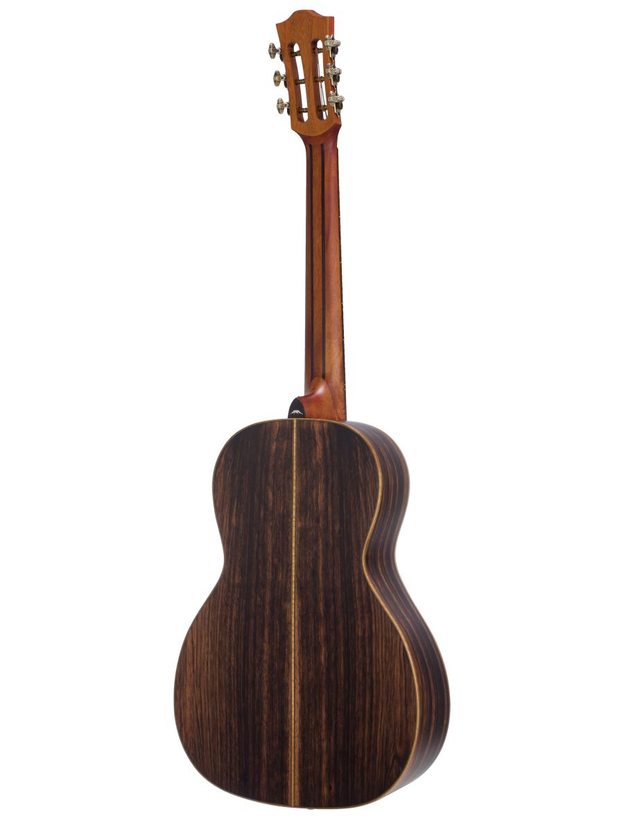 Bromo BAR6E Гитара электроакустическая Parlor, верхняя дека: цельный красный кедр, нижняя дека и обечайка: цельный макассарский эбен, гриф: махагони с двумя эбеновыми вставками, накладка грифа: макассарский эбен, двухсторонний анкер, колки: винтажные "Bromo" античная латунь, электроника: Fishman Sonitone, матовая, в чехле