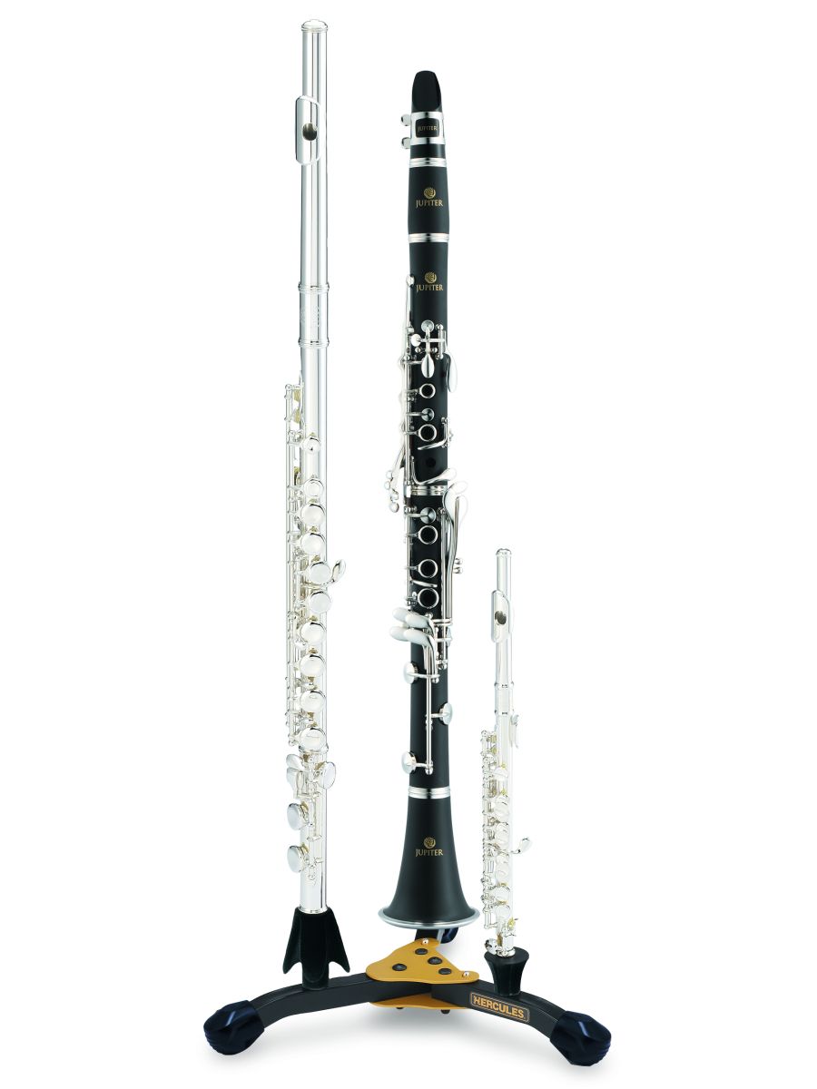 Hercules DS543BB Стойка для 2-х кларнетов (флейт) + 1 флейта-пикколо, напольная, с футляром