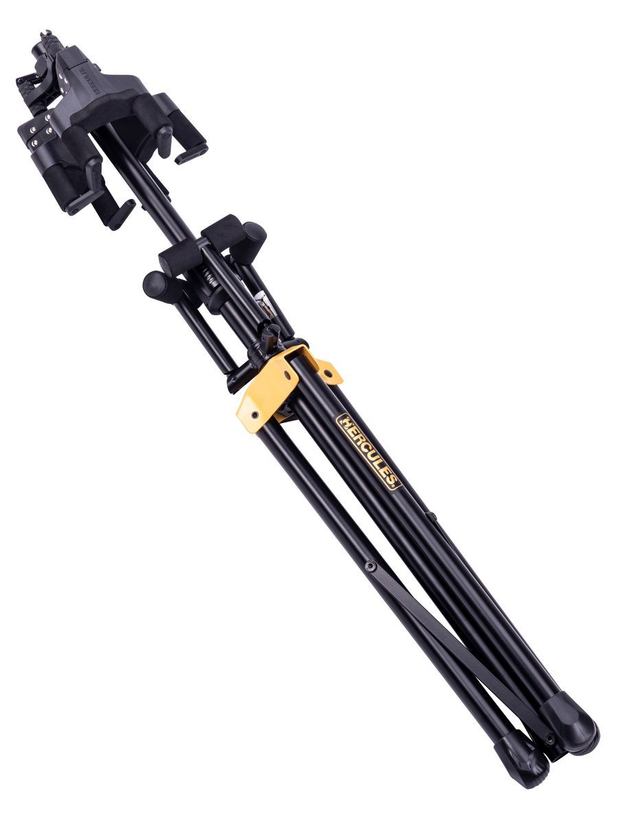 Hercules GS432B Plus – качественная гитарная стойка для размещения трех гитар одновременно. Усовершенствованная модель имеет складные кронштейны с автоматической системой захвата Auto Grip System. Механизм AGS реагирует на вес инструментов. Высота стойки мгновенно регулируется вручную. Качественный материал SFF защищает инструменты от повреждений во всех точках соприкосновения. Надежные кронштейны позволяют размещать на стойке гитары большого размера. Hercules GS432B Plus подходит для электрогитар, а также для классических и акустических моделей.