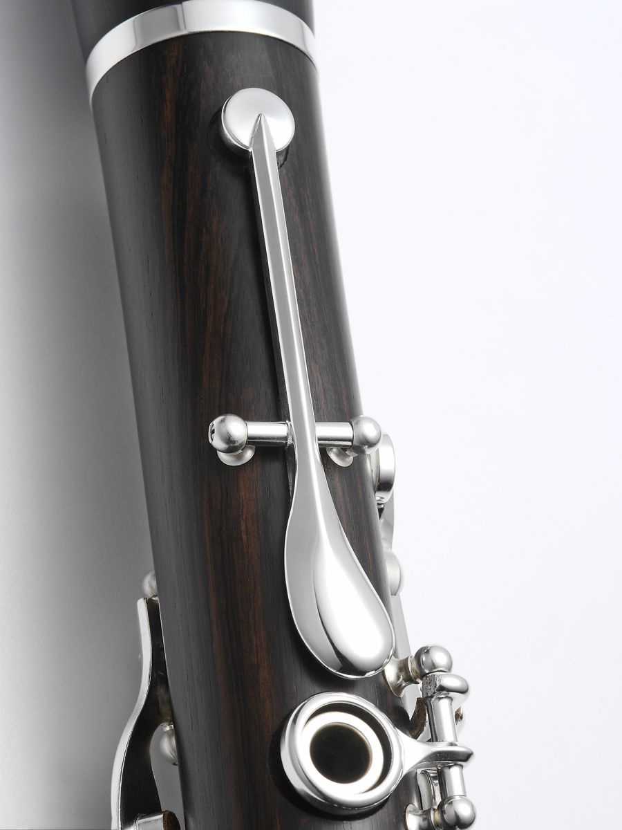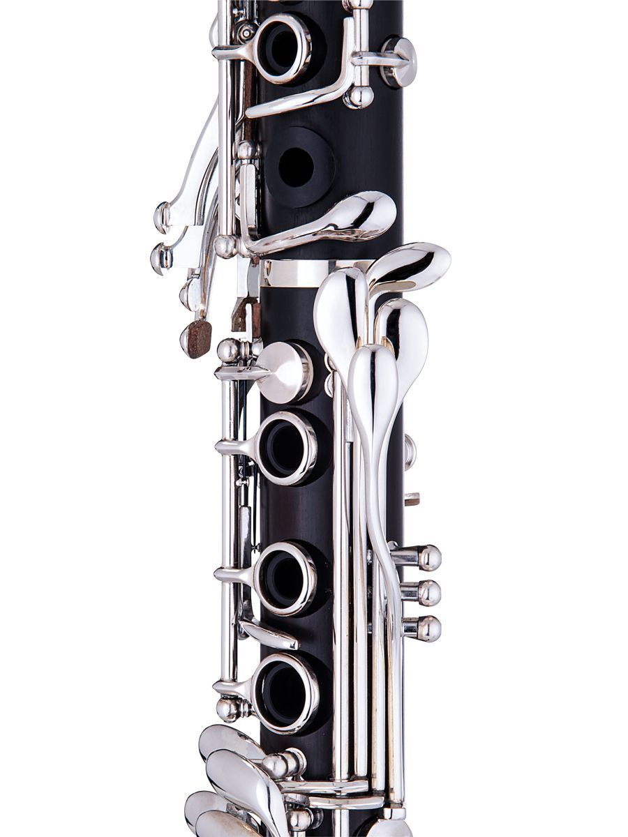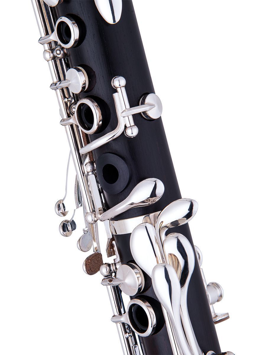 Строй: Bb Корпус: селекционное Гренадильное дерево Система: 18 клапанов, 6 колец (с клапаном ми-бемоль доп. аппликатуры) Клапаны: посеребренные из нейзильбера Полицилиндрическая мензура 14,65 мм Длина бочонка, мм: 64 мм + 65 мм Раструб: без металлического кольца Упор для большого пальца: регулируемый, с кольцом Эргономичный октавный клапан Эргономичный низкий F/C клапан Пружины из голубой стали В комплекте: мундштук, футляр, прочный кейс JKC-CL35WA с высококачественной тканевой сумкой Дополнительно: приподнятое С/G тоновое отверстие, дополнительный клапан Eb в левой руке Страна-производитель: Тайвань