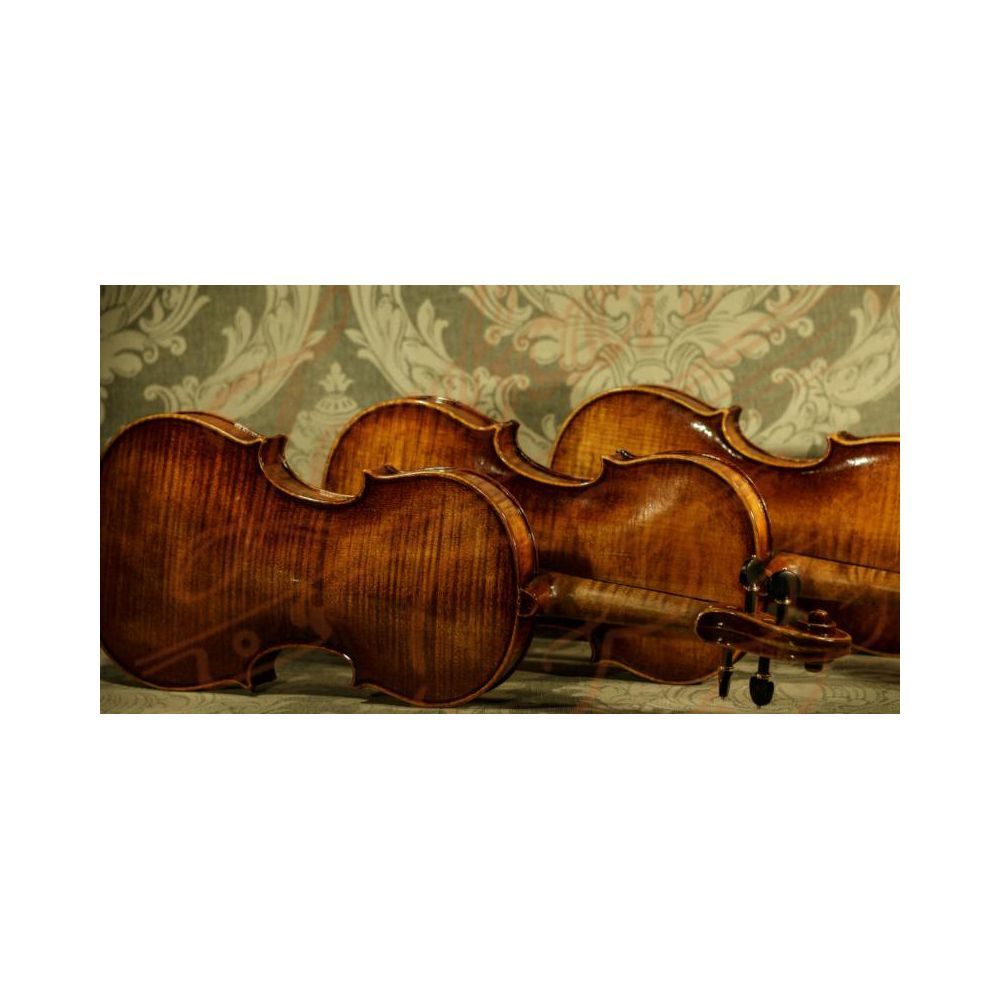 Прекрасная сольная мастеровая скрипка размером 4/4, изготовленная из высушенного естественным образом 50-летнего раритетного европейского клёна и тирольской ели. Ручная античная лакировка с лёгкой имитацией старинной скрипки. Прозрачный лак на золотистом грунте на основе природных смол и бальзамов с использованием масел и минералов передает стиль эпохи, подчеркивая красоту и звучание инструмента. Деревянный подгрифник и колки из чёрного африканского дерева, струны Evah Pirazzi Gold фирмы „Pirastro“ . Модель скрипки базируется на акустических решениях и формах старых мастеров и имеет исключительную эстетическую привлекательность. Скрипка мастеровая 4/4, Limited Edition, изготовленная из высушенного естественным образом 50-летнего раритетного европейского волнистого клёна и тирольской ели класса +ААА, струны Evah Pirazzi Gold, кейс JW 52017.