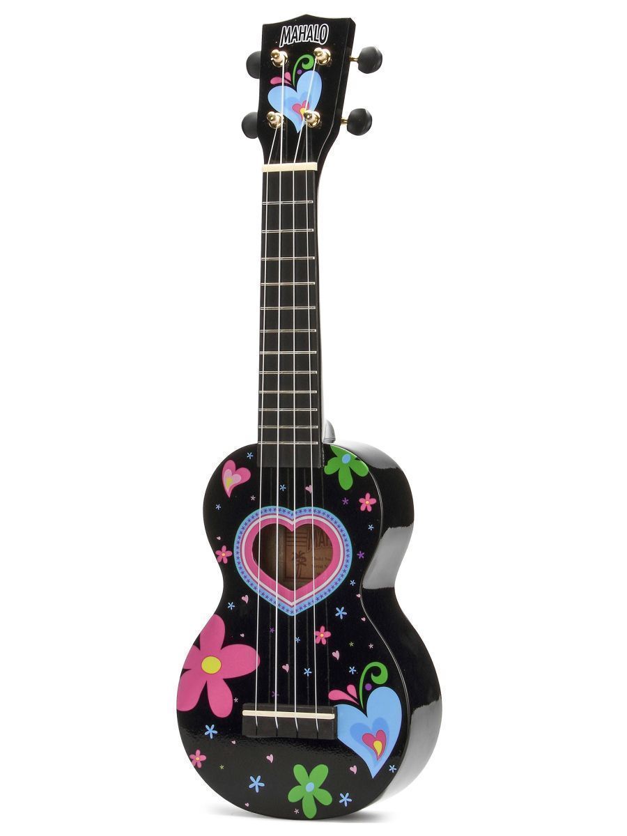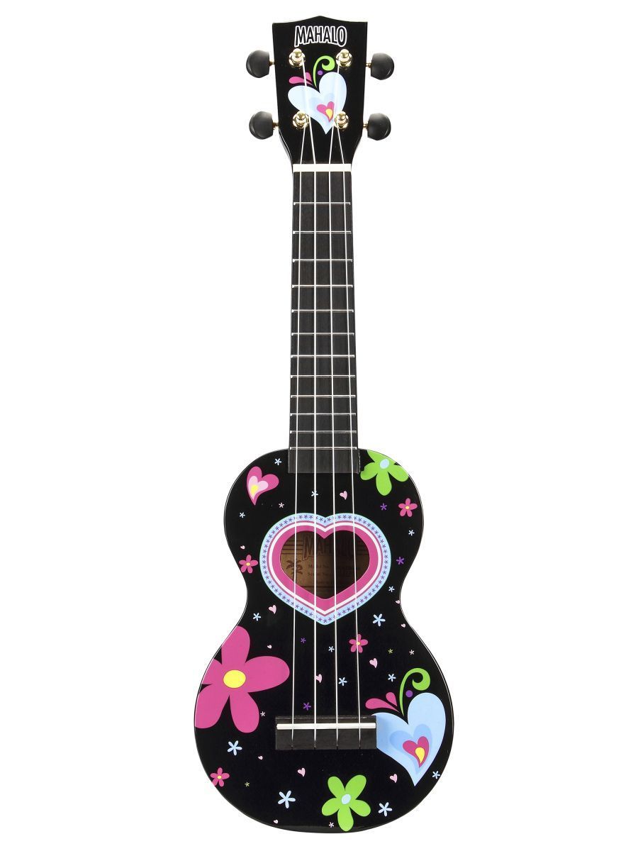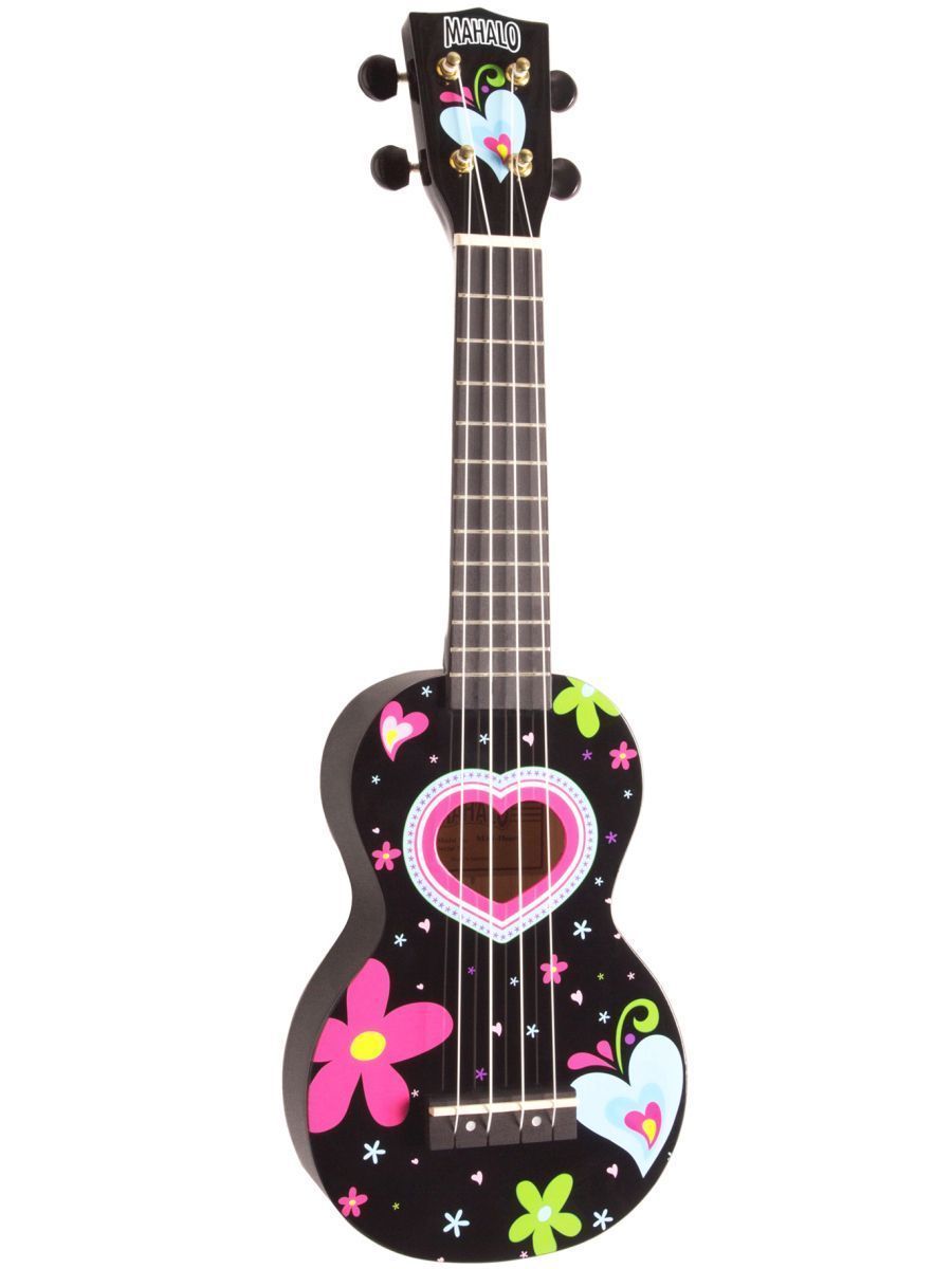Mahalo MA1HEBK Укулеле сопрано с чехлом, корпус - липа, гриф - габон, накладка на гриф махагони, струны Aquila Super Nylgut, цвет - Black, лакированная, рисунок - сердце, серия Art Soprano