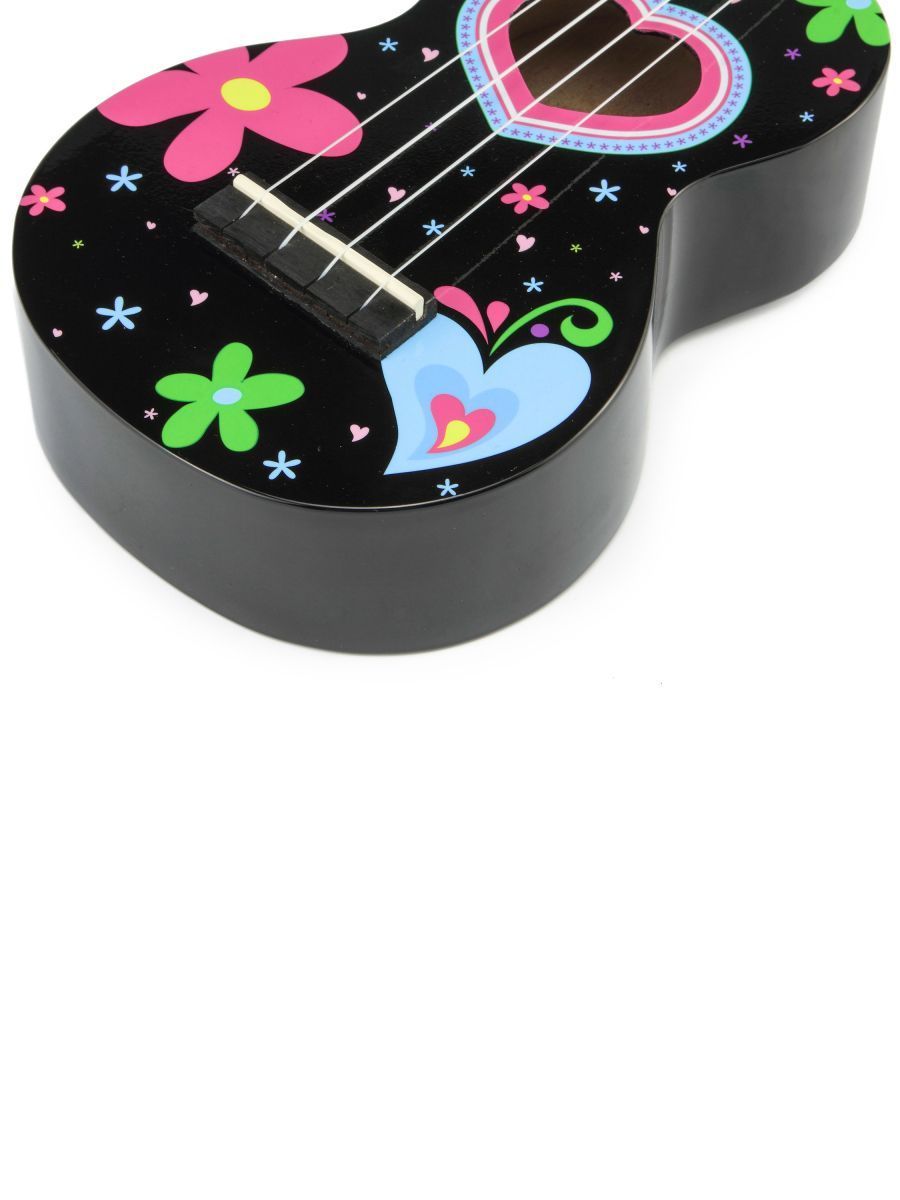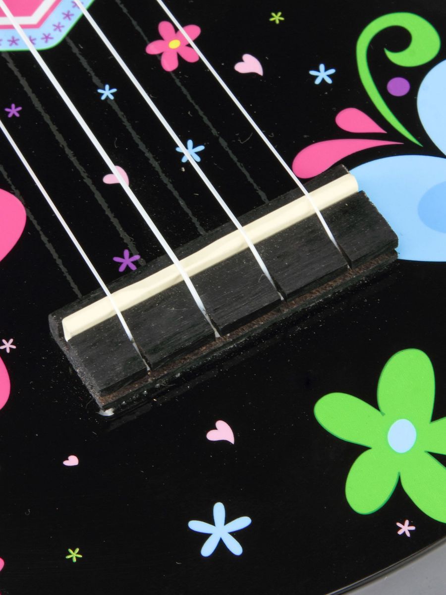 Серия: Art Тип: сопрано Количество струн: 4 Верхняя дека: липа Нижняя дека и обечайка: липа Гриф: габон Накладка на гриф: махагони Бридж: махагони Лады: 12, никель Струны: Aquila Super Nylgut Цвет корпуса: цвет черный, рисунок – сердце Покрытие: лак В комплекте: чехол
