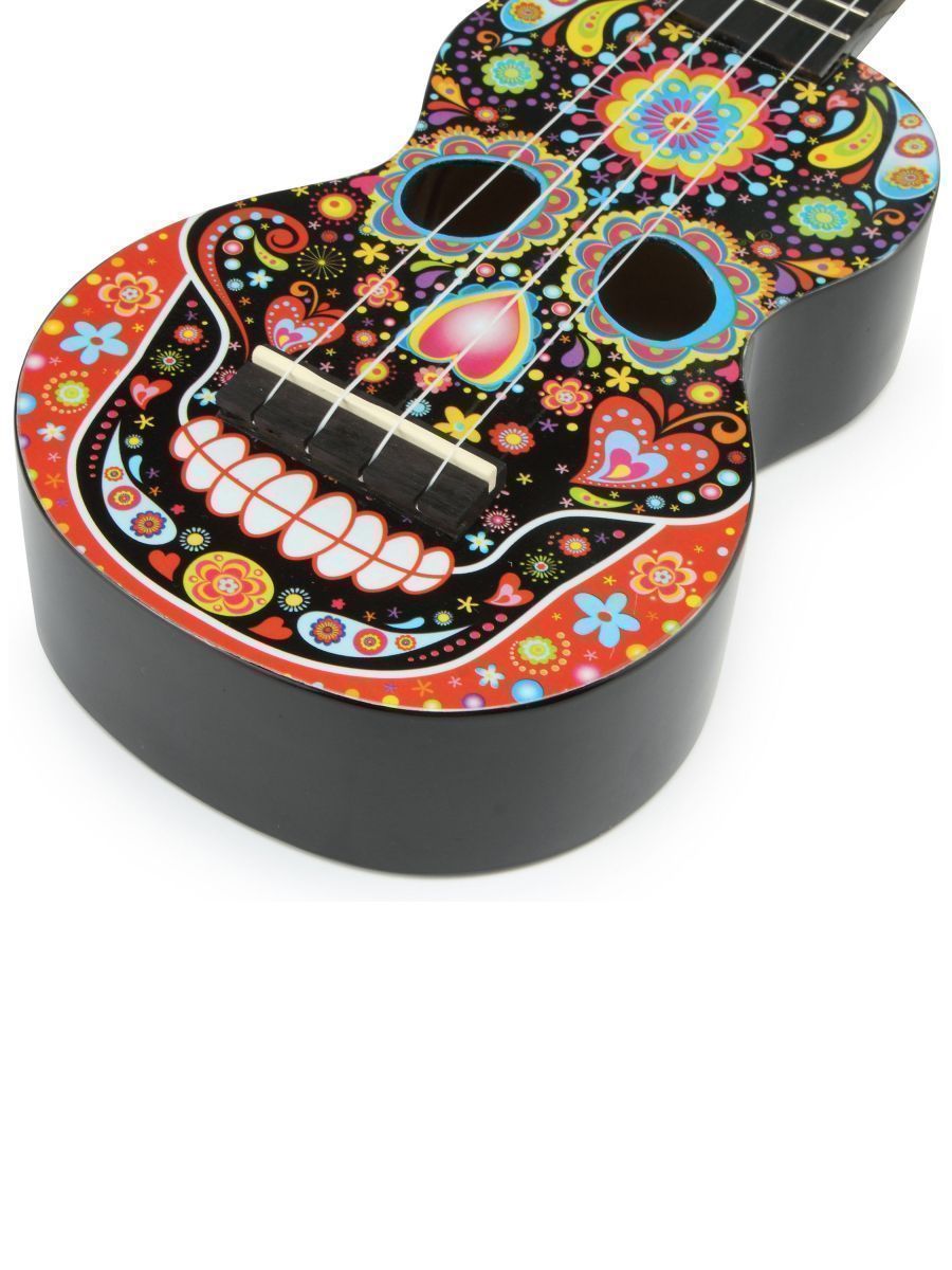 Серия: Art Тип: сопрано Количество струн: 4 Верхняя дека: липа Нижняя дека и обечайка: липа Гриф: габон Накладка на гриф: махагони Бридж: махагони Лады: 12, никель Струны: Aquila Super Nylgut Цвет корпуса: цвет черный, рисунок – череп Покрытие: лак В комплекте: чехол