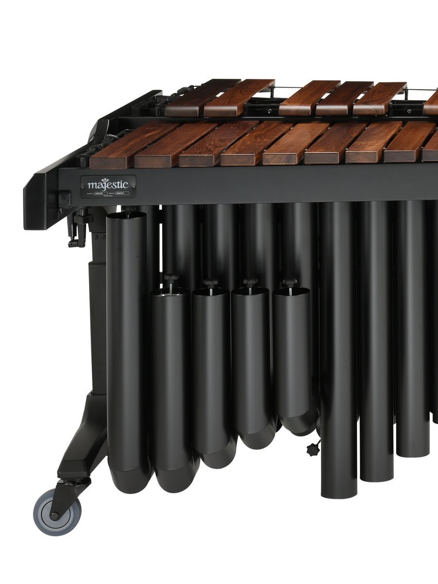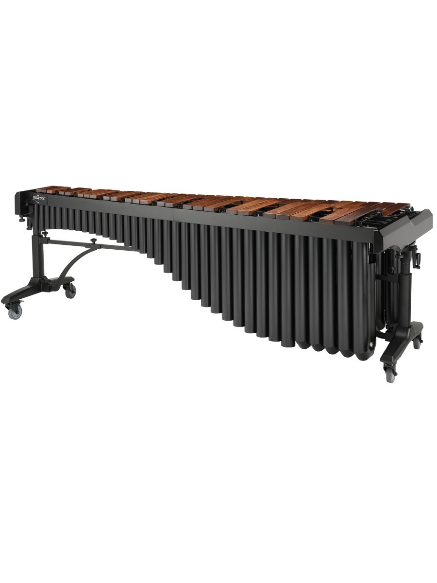 Majestic M650HB Маримба серии Concert, диапазон: 5 октав (С2-С7), пластины палисандр 41-76 мм, настраиваемые и регулируемые ниже A2 резонаторы: черные, регулируемая высота 84-106 см, длина 269 см, в комплекте накидка и молоточки