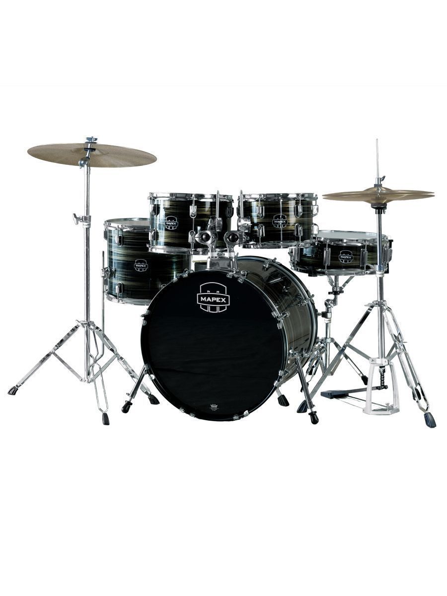 Mapex CM5294FTCFJ Ударная установка из 5-ти барабанов, Comet series: BD2216, TT1007, TT1208, FT1614, SD1450, педаль P250, стойки: H250, C250, S250, стул T400, тарелки 14" HIHAT + 16"CRASH, цвет Ebony Yellow Grain
