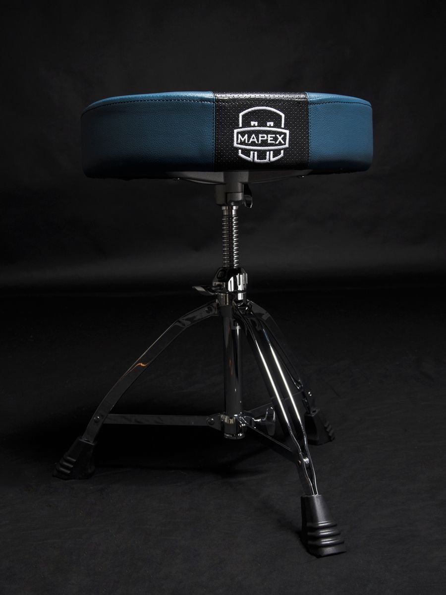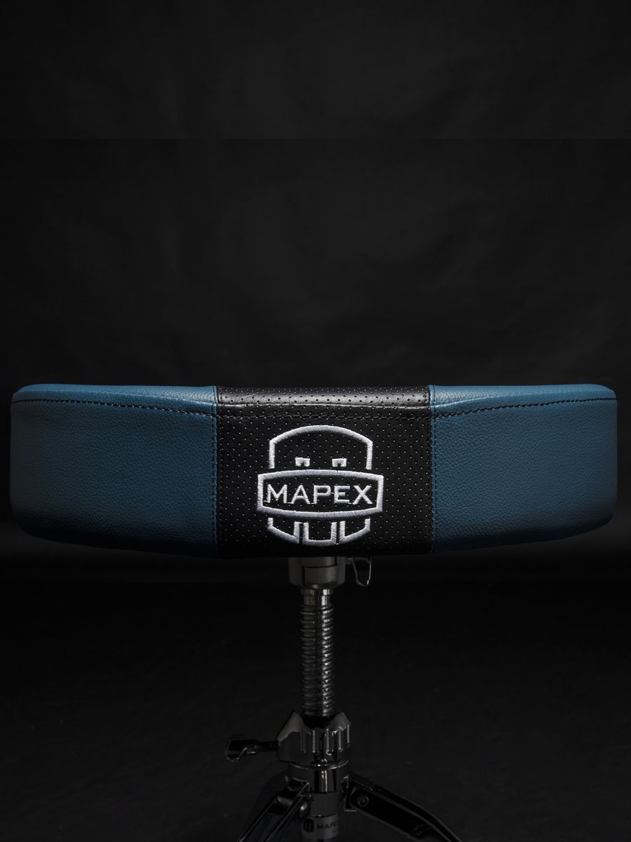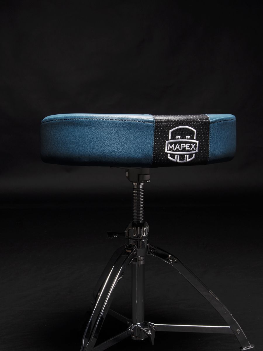 Стул Mapex T855BL с мото-сиденьем из дышащего винила чёрного цвета с синими вставками. Он имеет ось с резьбой и устойчивые двойные ножки. Этот стул идеально подходит для музыкантов, обеспечивая комфорт и надёжность во время игры.