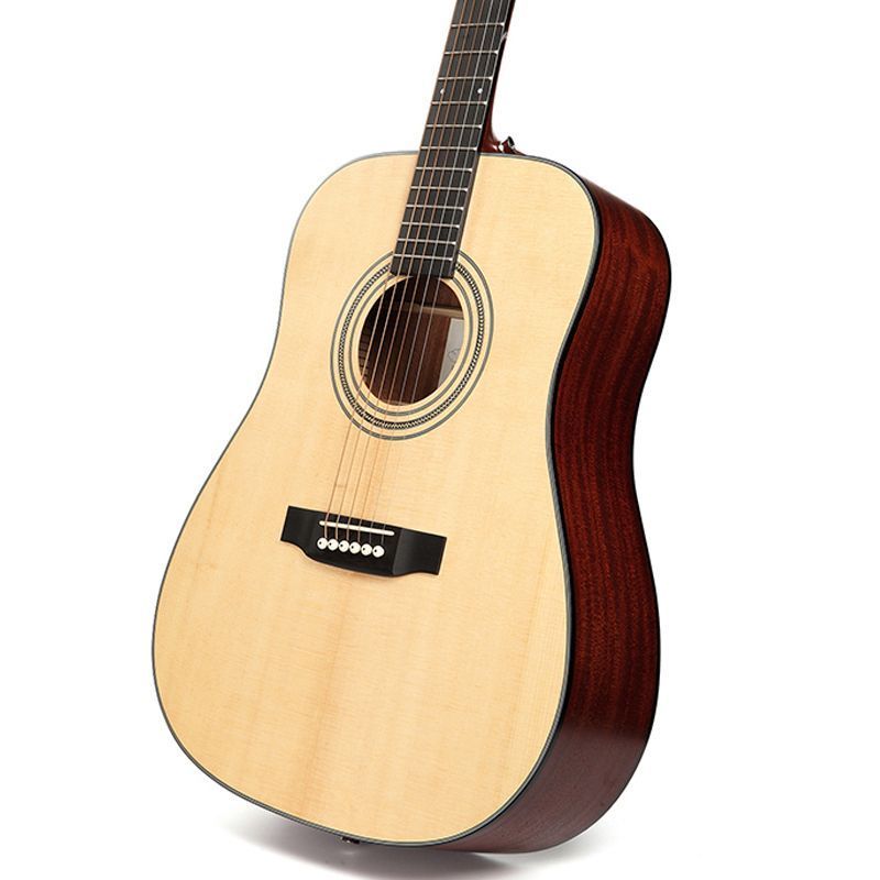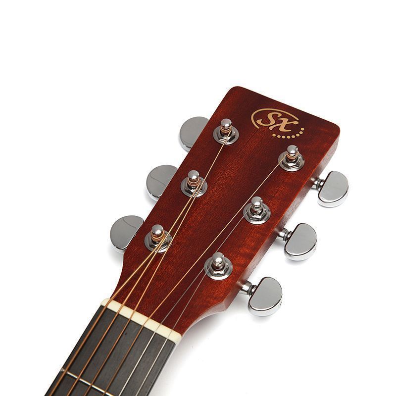SX SD704 Гитара акустическая, верхняя дека массив ели, нижняя дека и обечайка: сапеле, гриф: окуме, накладка грифа и нижний порожек: палисандр, колки: хромированное покрытие, цвет натуральный
