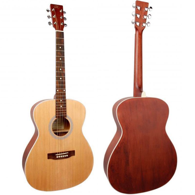 SX SO204 Гитара акустическая, верхняя дека ель, нижняя дека и обечайка: агатис, гриф: окуме, накладка грифа и нижний порожек: палисандр, колки: хромированное покрытие, цвет натуральный