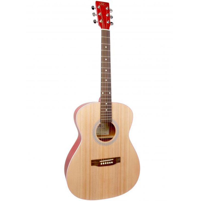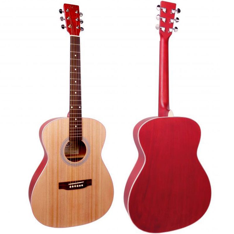 SX SO204TRD Гитара акустическая, верхняя дека ель, нижняя дека и обечайка: агатис, гриф: окуме, накладка грифа и нижний порожек: палисандр, колки: хромированное покрытие, цвет TRD