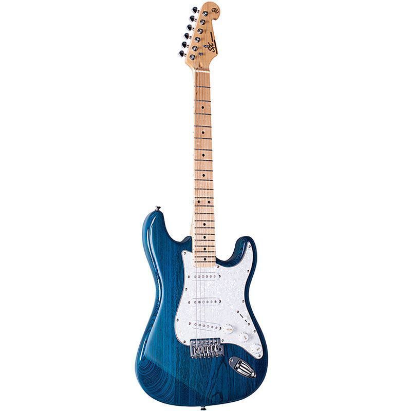 SX SST/ASH/TBU Электрогитара, стратокастер, материал корпуса: ясень, гриф: клен, накладка: клен, контроллеры: 1 громкость, 2 тона, 5 позиционный переключатель, цвет: Trans Blue