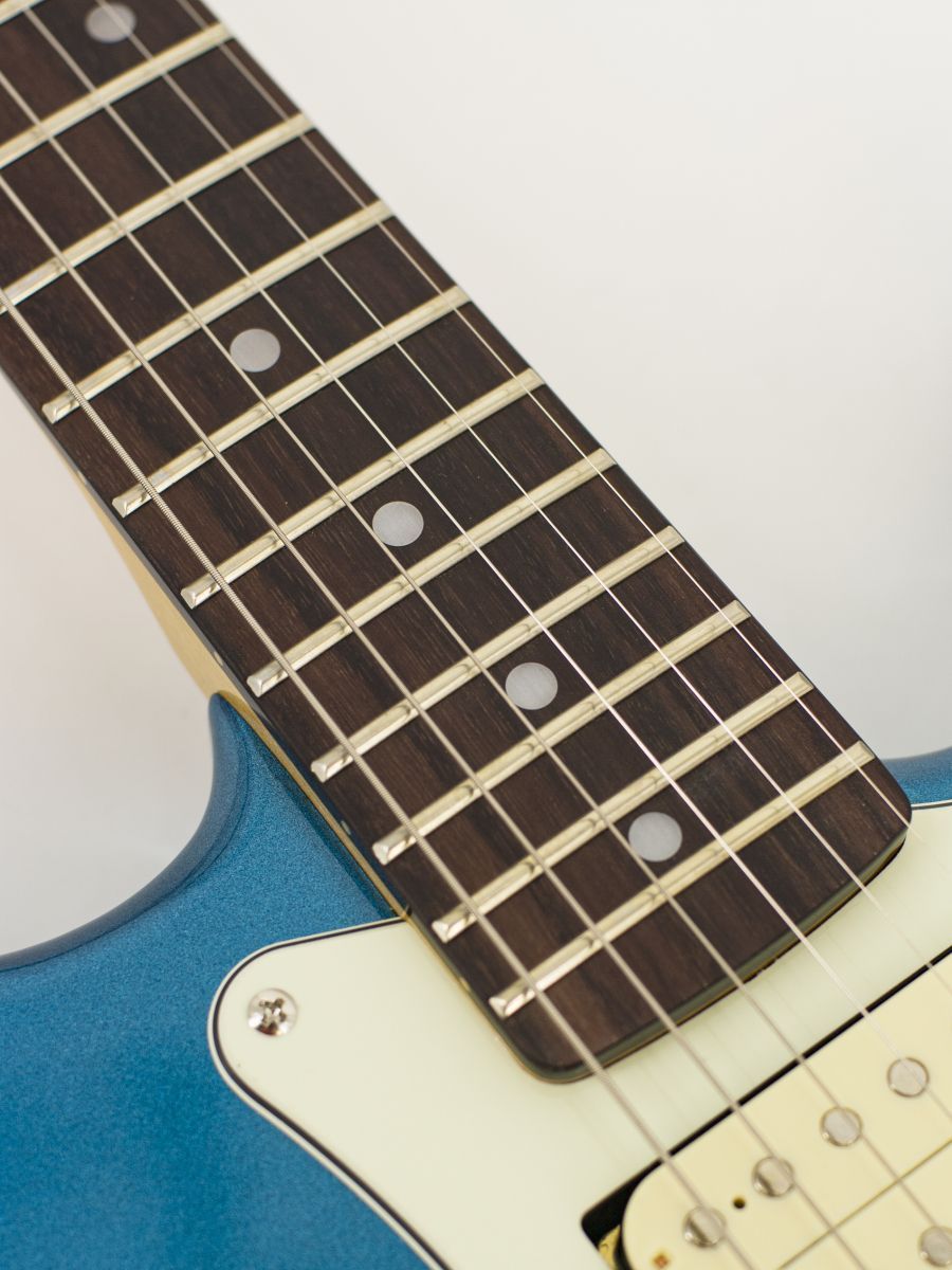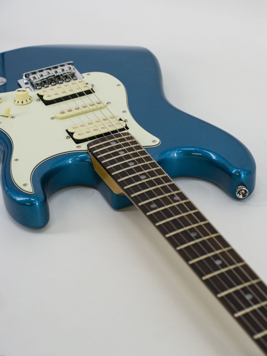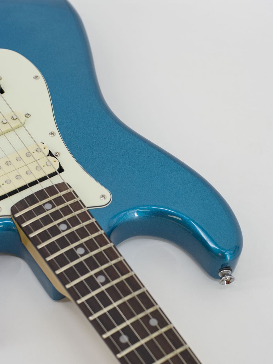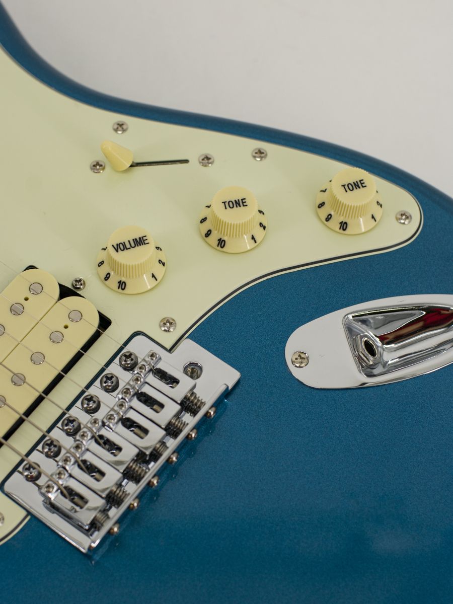 Тип корпуса: стратокастер Мензура: 648 мм Ширина верхнего порожка: 42 мм Материал корпуса: липа Гриф / накладка грифа: отборный канадский клён с палисандровой вставкой / палисандр Лады: 21 Звукосниматели: H-S-H Регуляторы: громкость – 1, тон – 2, 5-позиционный переключатель Цвет корпуса: Lake Placid Blue Страна-производитель: Китай