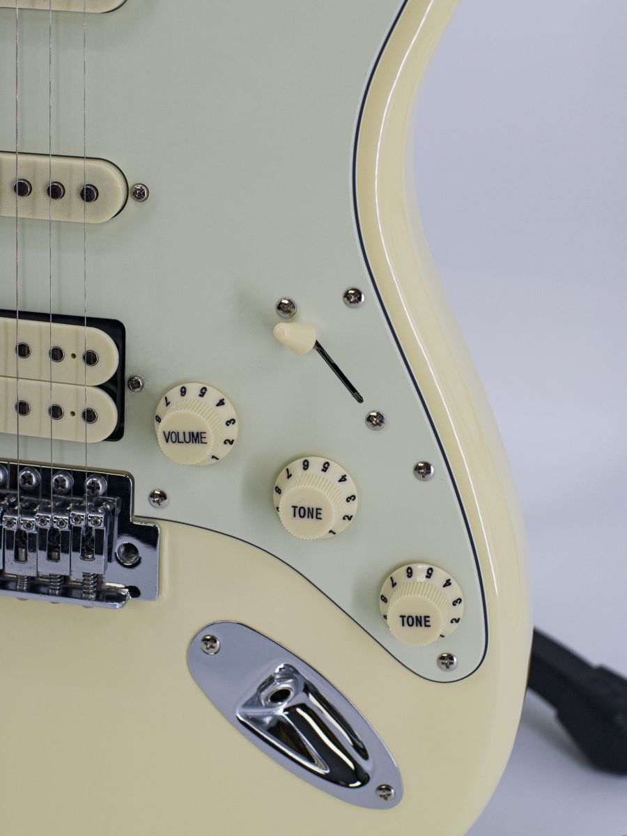 Тип корпуса: стратокастер Мензура: 648 мм Ширина верхнего порожка: 42 мм Материал корпуса: липа Гриф / накладка грифа: отборный канадский клён с палисандровой вставкой / палисандр Лады: 21 Звукосниматели: H-S-S Регуляторы: громкость – 1, тон – 2, 5-позиционный переключатель Цвет корпуса: Vintage White Страна-производитель: Китай