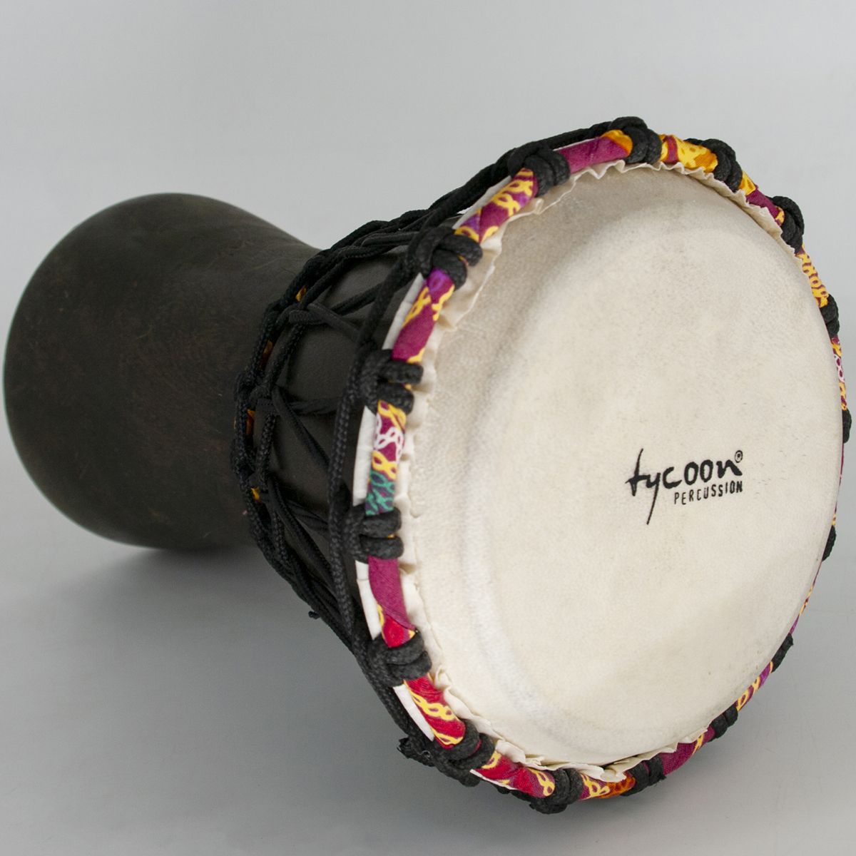 Tycoon TAJ-6 – африканский джембе 6". Сделан из красного африканского дерева, высушенного естественным образом на солнце. Мембрана из козьей кожи. Прочная нетянущаяся веревка для настройки обеспечивает стабильный строй. Уцененный выставочный экземпляр.