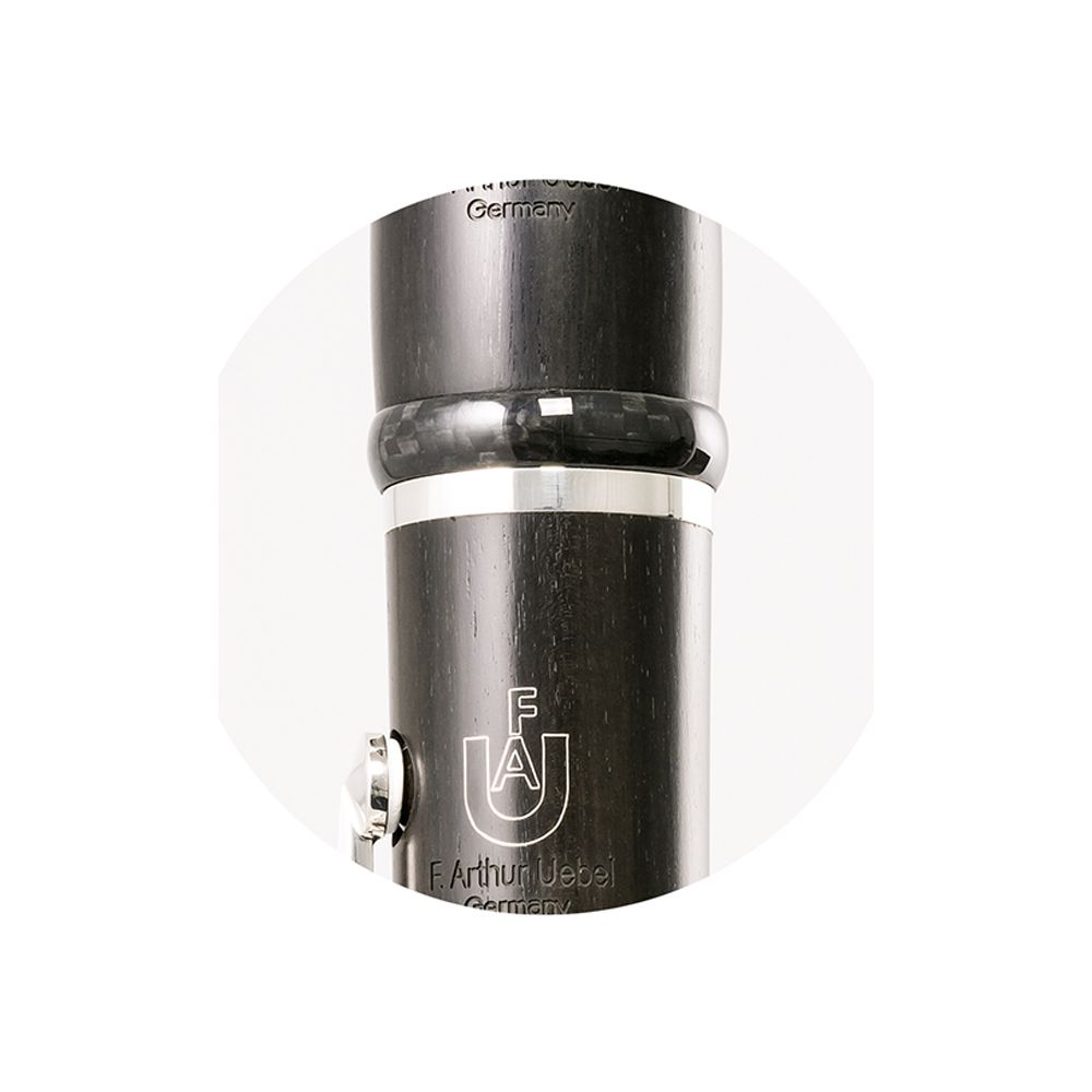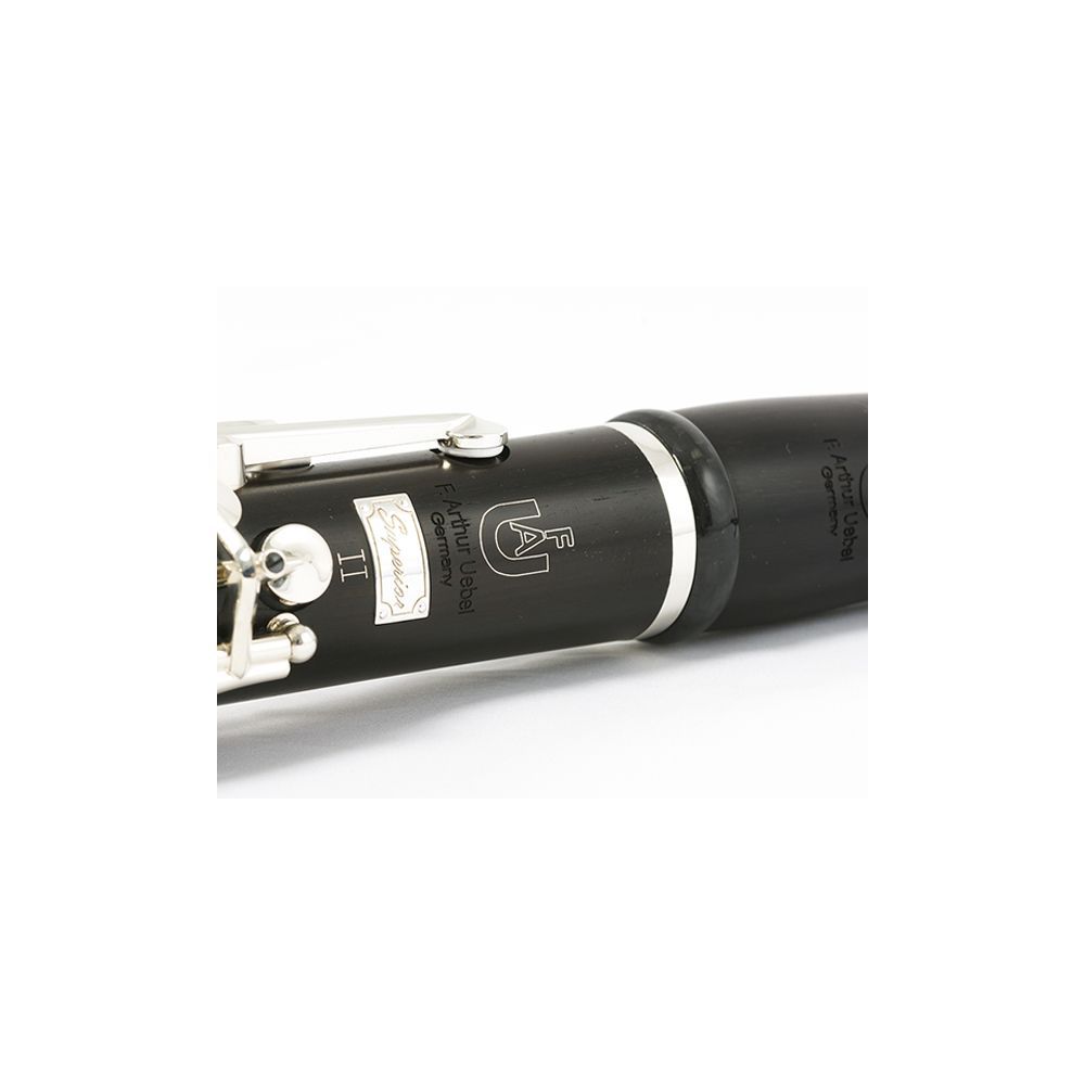 Uebel 425974 Кларнет SUPERIOR II GSP, строй A, 18 клапанов, 6 колец, отборное гренадильное дерево, эргономичный дизайн, мензура “Superior II”, рычаг Eb, 2 бочонка, регулируемый упор с кольцом для большого пальца, массивные карбоновые кольца, подушки LPGore, посеребренная механика, мундштук Vandoren, трость Vandoren, лигатура Vandoren "Klassik", кожаный кейс, кожаный чехол для кейса, кожаный футляр для аксессуаров